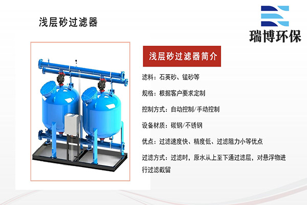 淺層砂過濾器過濾系統采用模塊式設計,根據流量、占地等不同,可靈活組合。